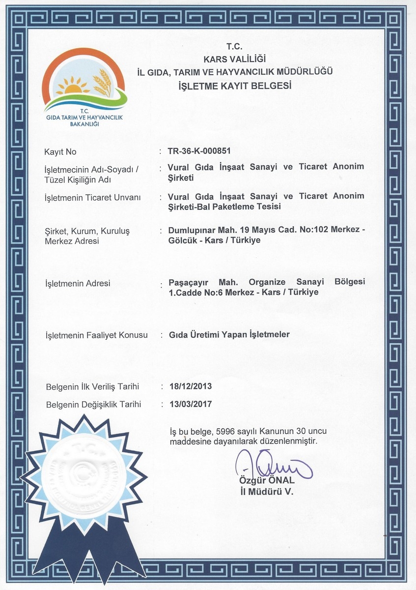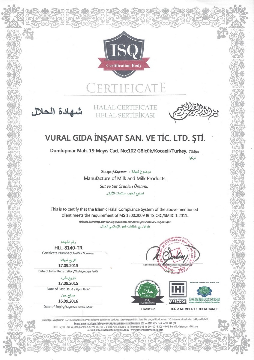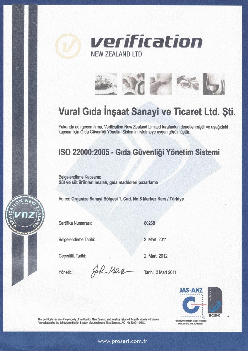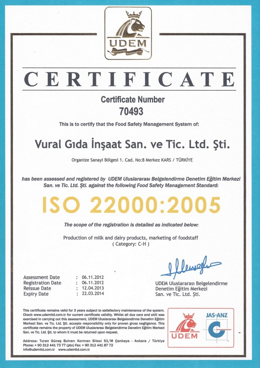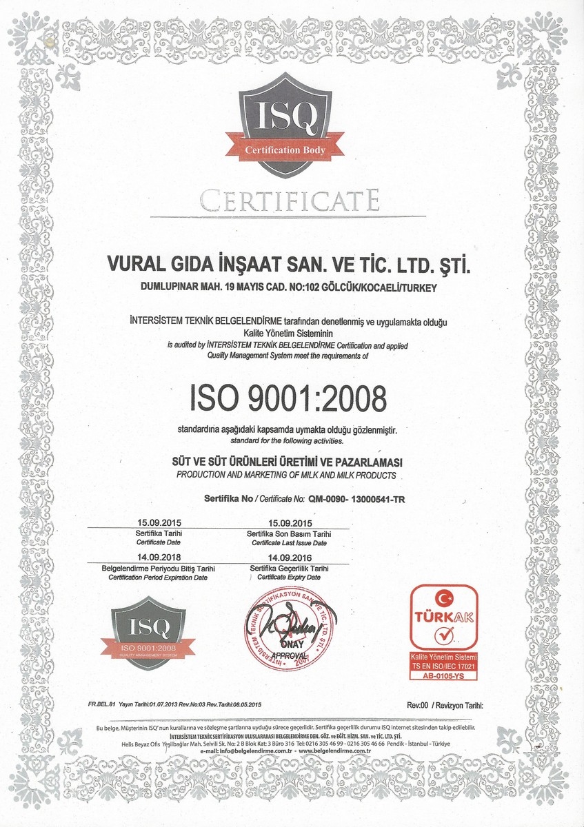 Firmamızın üretim konusundaki sertifikaları